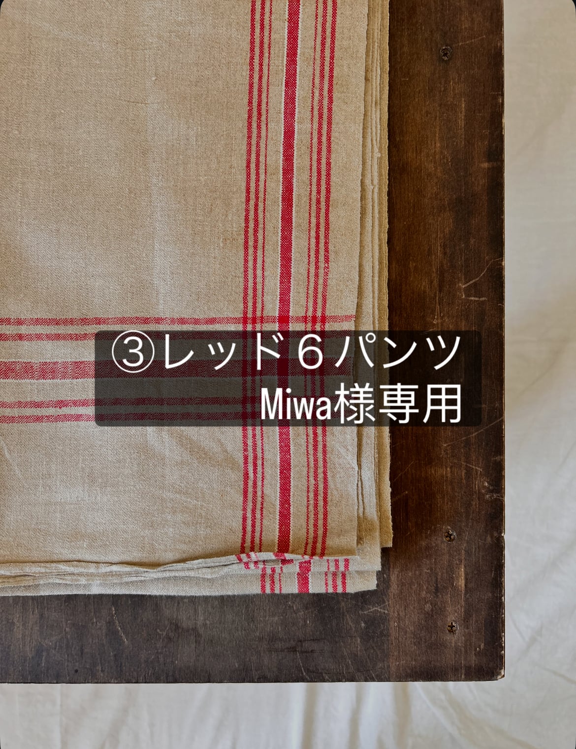 古いアンティークリネンの経年劣化も合わせ楽しんでいただけたらと思います。