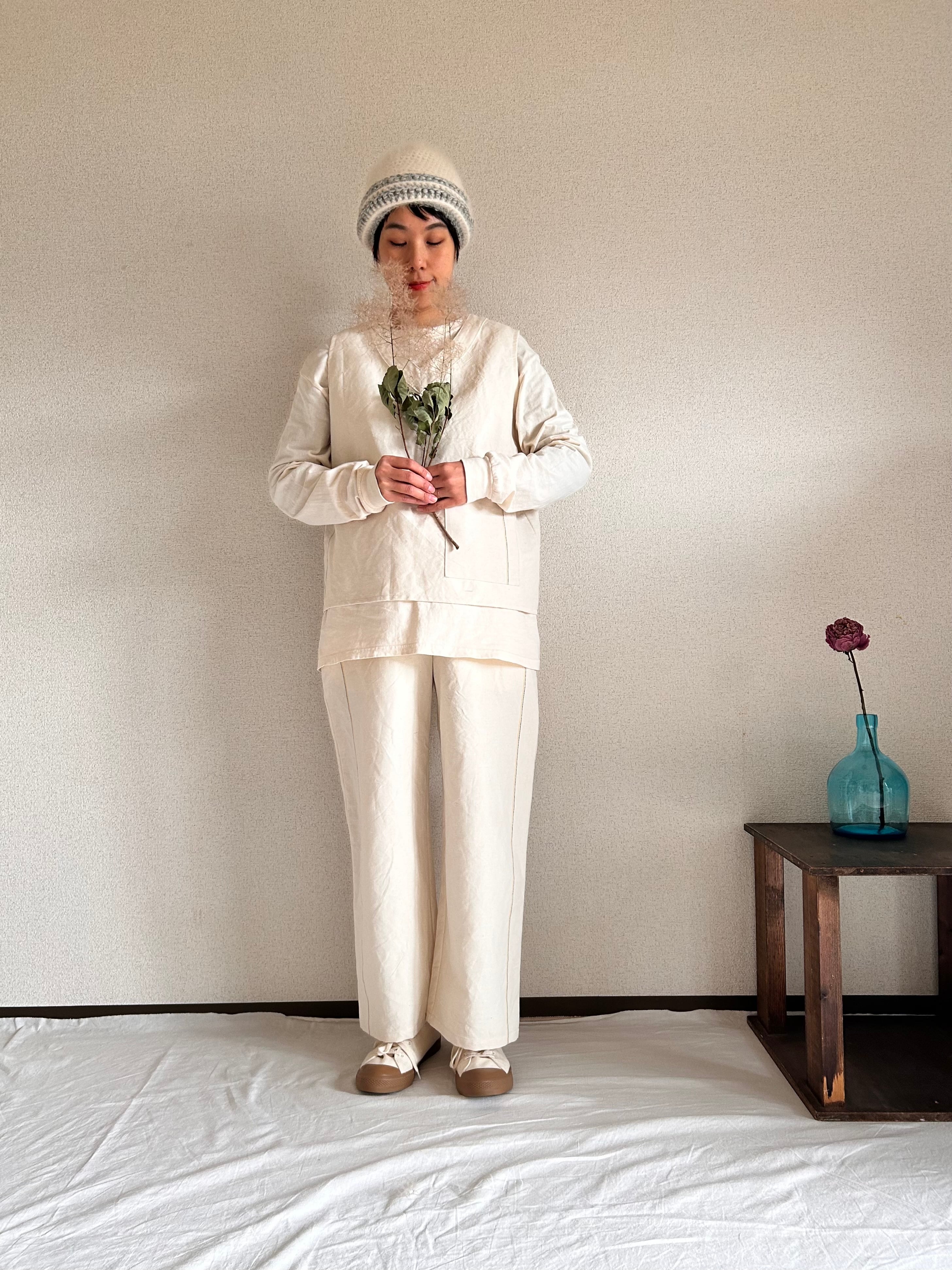 今では希少となったドイツのアンティークシーツリネンを贅沢に使ってパンツをお作りしました。