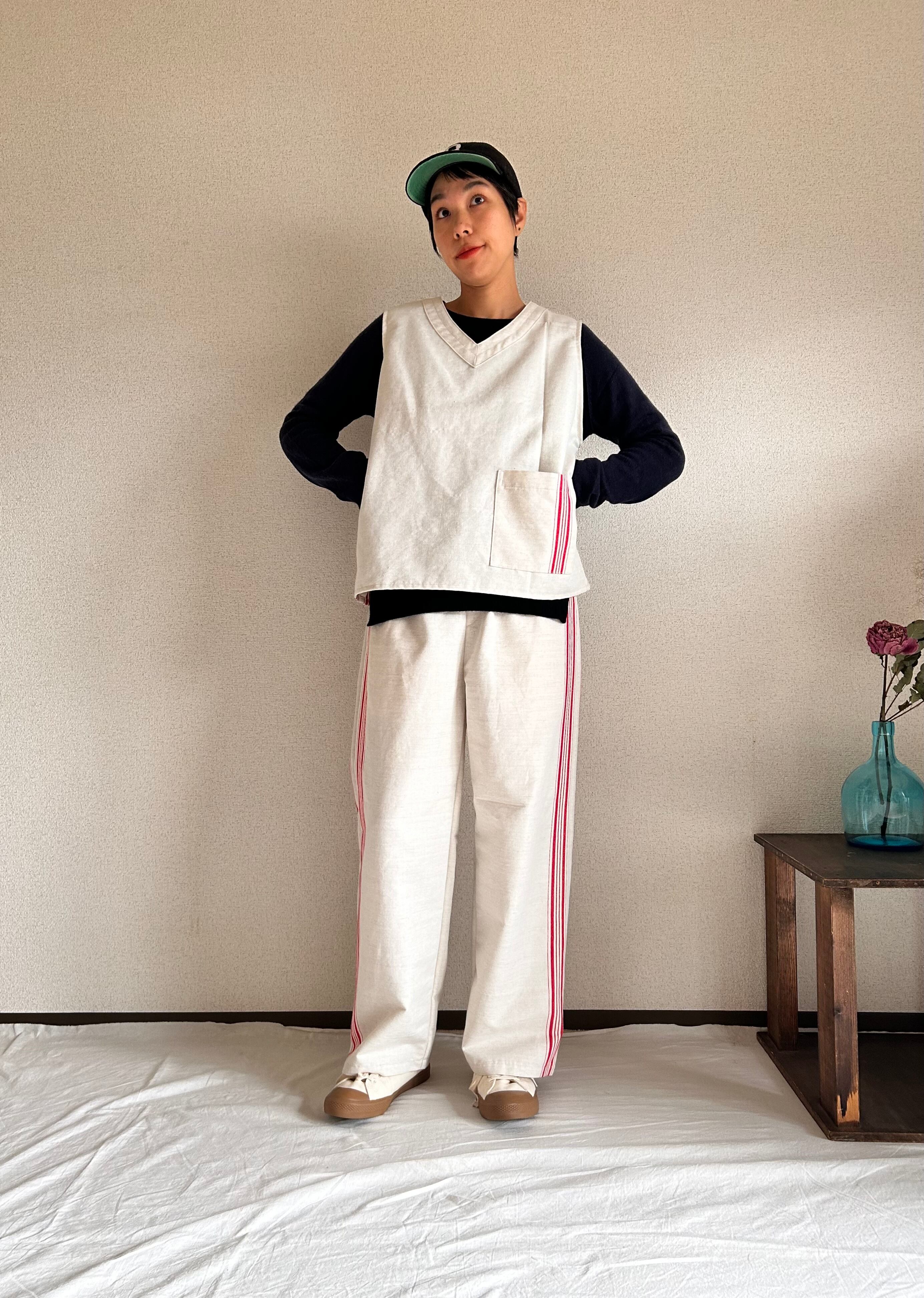 “マングルクロス” を贅沢に使ったベストです。